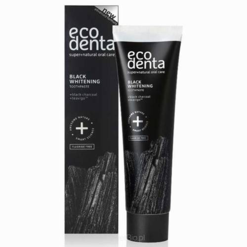 To pasta, która nie tylko dba o zdrowie całej jamy ustnej, ale także wybiela zęby. Idealna dla osób ceniących naturalne kosmetyki, a także unikają fluoru. Bowiem Ecodenta Black to pasta bez fluoru, zaś 97% jej składników jest pochodzenia naturalnego. Nie zawiera SLS i SLES. Oprócz węgla drzewnego w paście występuje Teavigo, czyli ekstrakt z zielonej herbaty bezkofeinowej. Ekstrakt pomaga usunąć nagromadzone osady i zapobiega ich ponownemu gromadzeniu się.