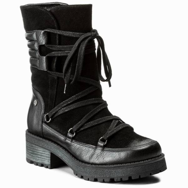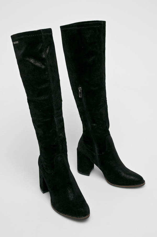 Klasyczne czarne kozaki z połączenia skóry ekologicznej i naturalnej – Tamaris, 299 zł