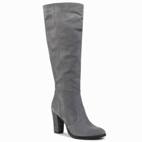 Kozaki w jasnoszarym odcieniu o welurowej fakturze – Nessi, 299 zł