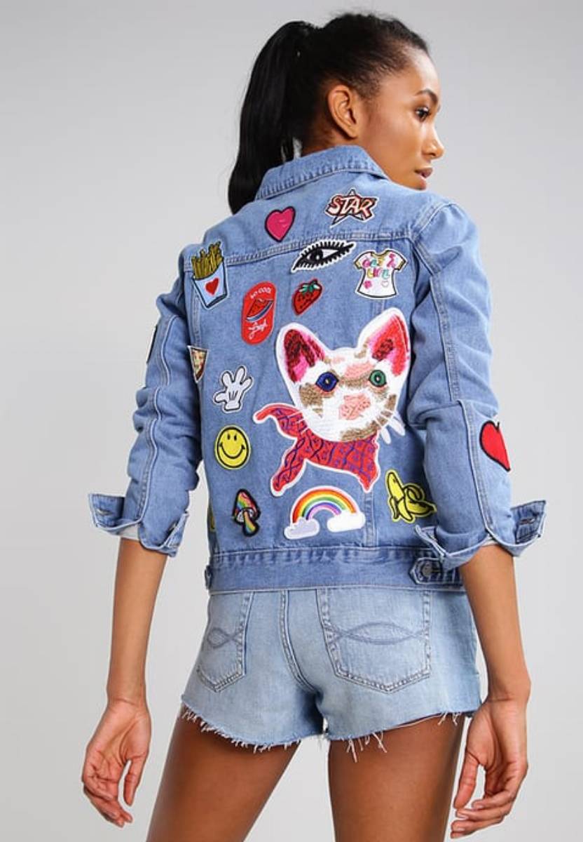 Dżinsowa kurtka z żartobliwymi naszywkami na całej powierzchni – Glamorous, 349 zł
