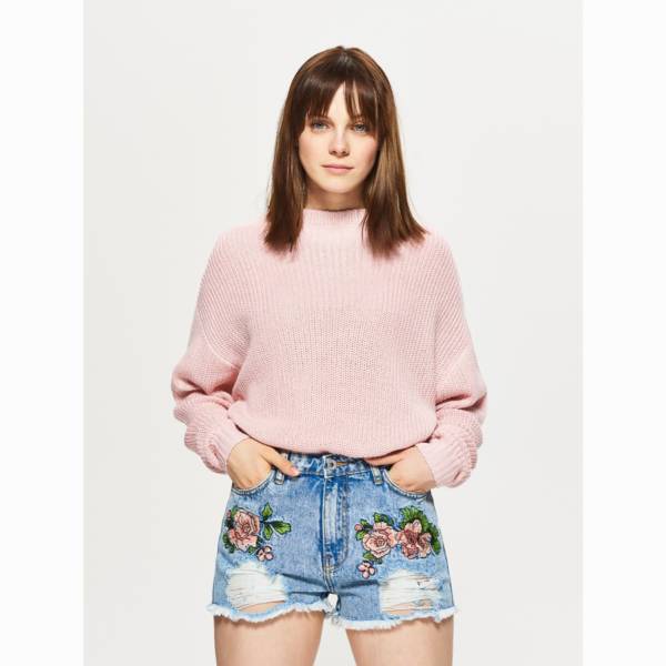 Dżinsowe szorty z haftem – Cropp, 99,99 zł