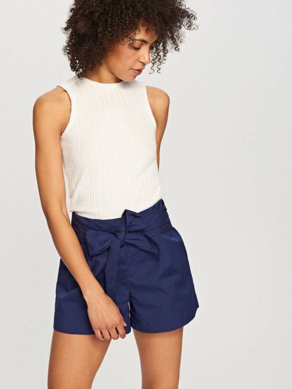Cienkie, granatowe szorty zawiązywane na kokardkę – Reserved, 89,99 zł