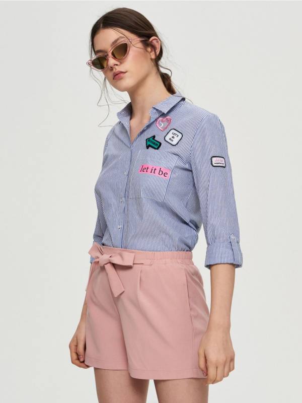 Szykowne spodenki z wiązaniem w odcieniu pudrowego różu – Sinsay, 49,99 zł