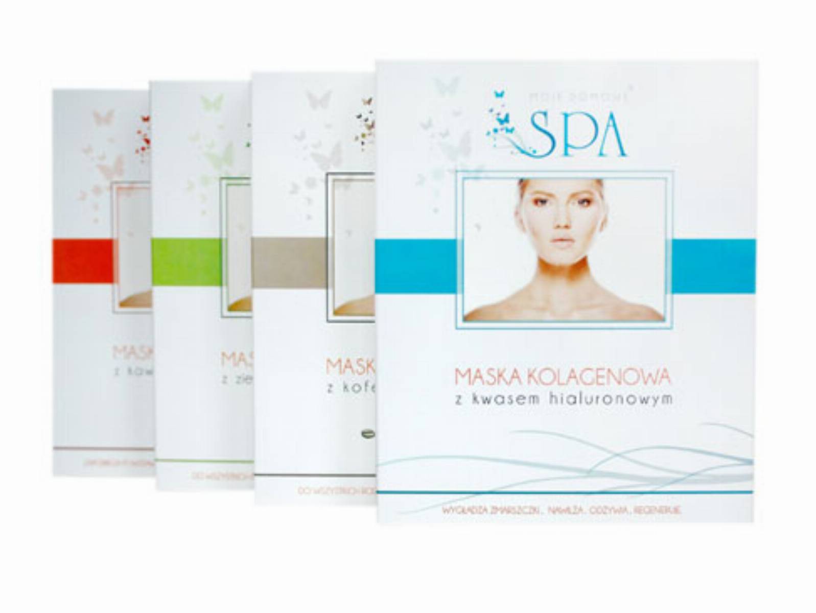 Maska kolagenowa z kofeiną i witaminami– przeznaczona do wszystkich rodzajów skóry, odświeża i regeneruje. Kofeina poprawia krążenie i tym samym ułatwia detoksykacje skóry oraz zwiększa dotlenienie tkanek. Dzięki niej, zmęczona i szara skóra staje się jędrna i nabiera blasku.