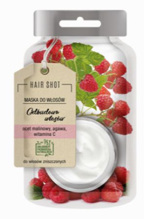 Inspiracją do opracowania linii masek do włosów Hair Shot stała się natura, czyli wszystko, co najcenniejsze na łąkach, polach czy w ogrodzie. Maski Hair Shot charakteryzuje bardzo wysoka 98% zawartość składników pochodzenia naturalnego, a także gęsta, przyjemnie kremowa formuła, pozwalająca uzyskać satysfakcjonujący efekt po zaledwie 3 minutach. Odbudowująca maska do włosów zawiera ocet malinowy, agawę i witaminę C.