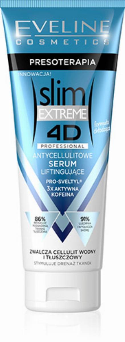 Jeśli zmagasz się z problemem nadprogramowych centymetrów w strategicznych obszarach ciała (biodra, brzuch, uda, pośladki) oraz nieustępliwą „skórką pomarańczową” – Intensywnie wyszczuplające serum remodelujące SLIM EXTREME 4d to produkt dla Ciebie! Aktywnie wspomaga proces odchudzania, rozbija komórki tłuszczowe, a specjalna formuła chłodząca maksymalnie ujędrnia i zmniejsza obrzęki.