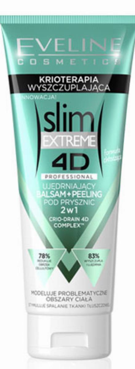 Wielofunkcyjny preparat z serii SLIM EXTREME 4D, inspirowany mechanizmami krioterapii, zapewnia efekt silnego miejscowego chłodzenia, usprawnia mikrokrążenie, redukuje obrzęki cellulitowe i maksymalnie uelastycznia skórę.