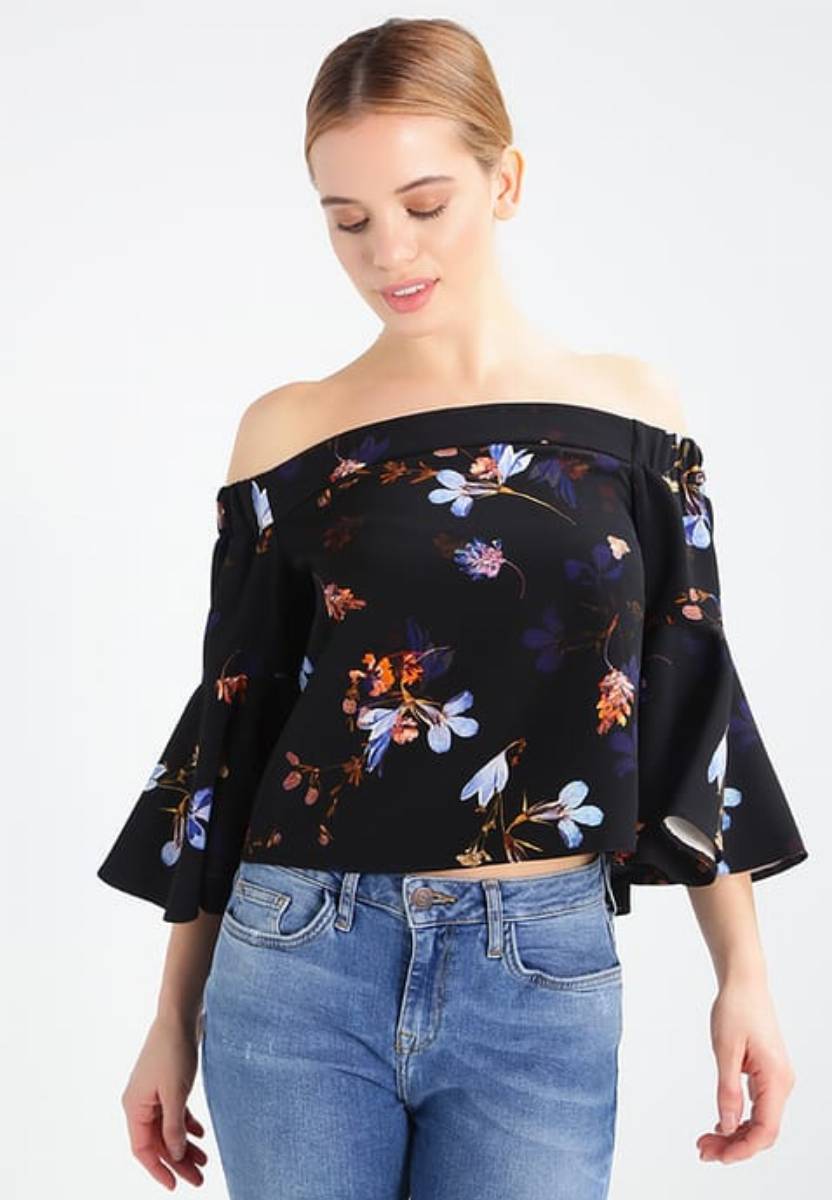 Czarna bluzka z pięknym kwiatowym wzorem – Top Shop Petite, 146,30 zł