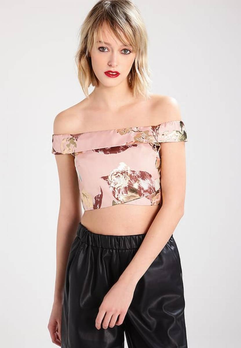 Kwiatowy minitop w odcieniu pudrowego różu – Miss Selfridge, 209 zł