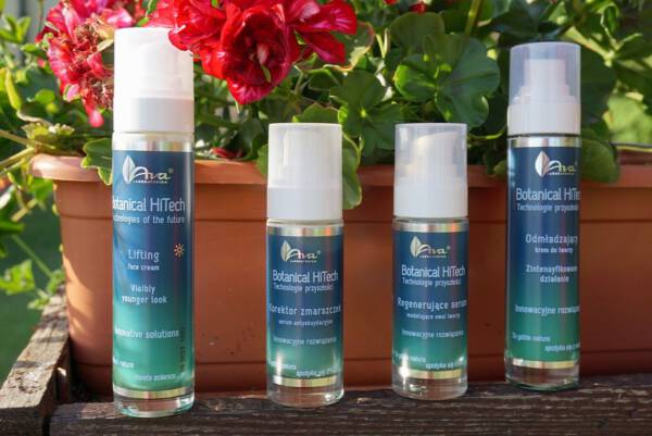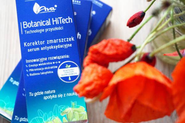 Botanical HiTech, Technologie Przyszłości – oto nowa, ciekawa propozycja marki Ava, z która miałam okazje się zapoznać. Jest to seria kosmetyków o działaniu przeciwstarzeniowym, wiec przypadnie do gustu szczególnie posiadaczkom cer nieco bardziej dojrzałych, lubiących treściwe produkty. W skład serii wchodzi między innymi Korektor Zmarszczek czyli serum antyoksydacyjne. Seria oparta jest o innowacyjne rozwiązania, kosmetyki zawierają w sobie Taksyofolinę, będąca antyoksydantem o odmładzającym działaniu, emulsję wielokrotną (woda – olej – woda) chroniącą składniki aktywne i stopniowo je uwalniające oraz zastosowani mikronizację składników pozwalając im wnikać w głąb skóry.