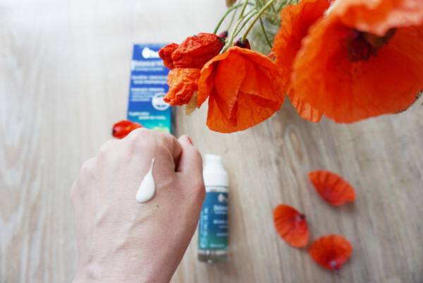 Opakowania zaprojektowane są w przyjemnych barwach, połączenia relaksującej zieleni i niebieskości. Korektor zmarszczek to produkt, który otrzymujemy w szklanej buteleczce o pojemności 30 ml, z dołączoną higieniczną pompką, dzięki które można aplikować dowolną ilość produktu. Zapakowane jest ono w kartonik z nadrukowanymi wszelkimi niezbędnymi informacjami w dwóch językach – polskim i angielskim. Bardzo podoba mi się opakowanie z ciężkiego szkła, zapewniające komfort używania. Serum ma przyjemny, lekko wyczuwalny zapach, mam wrażenie że jest najmniej intensywne spośród pozostałych produktów, jakie miałam okazję testować. Jako fanka kosmetyków bezzapachowych lub o bardzo słabym zapachu, to ten kosmetyk w tym względzie jest moim ulubieńcem.
