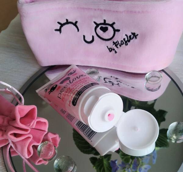 Peeling, podobnie jak jego opakowanie, również jest koloru różowego a do tego posiada przyjemny, delikatny zapach. Aplikacja peelingu jest bardzo prosta – po nałożeniu produktu na zwilżoną skórę wykonujemy delikatny masaż tak długo, aż na naszej skórze pojawią się drobinki naskórka, a peeling „gumkuje się” pod palcami. Spłukujemy i gotowe! Dla mnie peeling okazał się idealnym dopełnieniem wieczornej pielęgnacji, skóra jest oczyszczona w łatwy, przyjemny sposób, bez żadnych podrażnień i jest przygotowana do wdrożenia dalszej pielęgnacji.