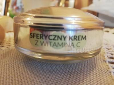 Krem bogaty jest w kwas askorbinowy, który ma właściwości antyoksydacyjne, przeciwzapalne, wzmagające syntezę kluczowego białka budulcowego- kolagenu. Jego dodatkowym atutem jest nikotynamid, który należy do grupy witamin B i jest prekursorem dwóch koenzymów: NAD i NADP. Uczestniczą one w oddychaniu komórkowym i przemianach metabolicznych cukrów, lipidów i białek. Tym właśnie substancjom zawdzięczam pozytywne rezultaty stosowania sferycznego kremu. Aby jednak je osiągnąć, ważna jest systematyczność, toteż ustaliłam, iż będę go nakładać codziennie rano, po dokładnym oczyszczeniu twarzy.