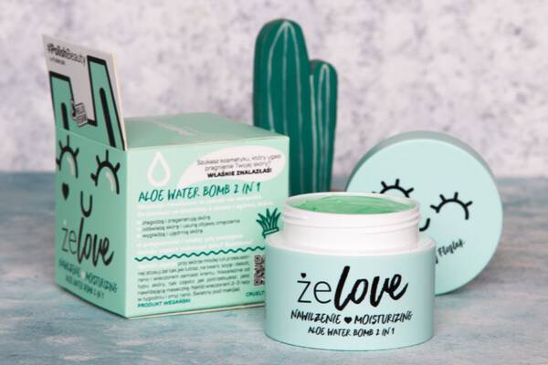 Żelove nawilżenie Aloe Water Bomb 2 in 1 to nowa propozycja marki Floslek. Zadaniem tego produktu jest złagodzenie i zregenerowanie skóry. Ma on sprawić, że będzie ona bardziej wygładzona i ujędrniona, a także odświeżona i bardziej wypoczęta. Kosmetyk ten przeznaczony jest do stosowania na twarz, szyję oraz dekolt. W zależności od potrzeb skóry można go stosować jako codzienny zamiennik kremu lub nawilżającą maseczkę – 2 lub 3 razy tygodniowo. Bardzo fajne jest to, że mamy do czynienia z wegańskim kosmetykiem cruelty free, którego opakowanie wspiera dodatkowo działania eko, przez brak folii.