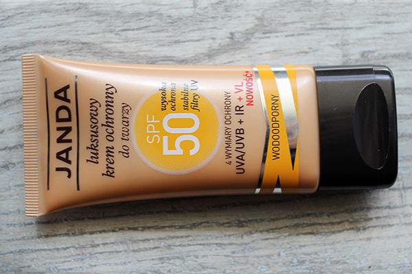 Dzięki portalowi KobietaMag mogłam ostatnio przetestować Janda, Luksusowy krem ochronny do twarzy SPF 50. To co mi się w nim podobało to: krem zamknięty jest w ładnym opakowaniu, które jest niezwykle wygodne w uzyciu. Nie przepadam za kremami w tubkach, ale ten można na tubce postawić, dzięki czemu spływa na dół i nie ma problemu z jego wyciskaniem. Zawiera 50 ml, ale mimo to wydaje się niewielki i z łatwością można go upchnąć nawet do niewielkiej damskiej torebki, tym samym łatwo go ze sobą zabrać na spacer, na plażę, czy do pracy.
