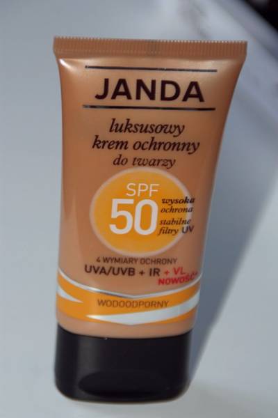 Dzięki portalowi KobietaMag mogłam ostatnio przetestować Janda, Luksusowy krem ochronny do twarzy SPF 50. To co mi się w nim podobało to: krem zamknięty jest w ładnym opakowaniu, które jest niezwykle wygodne w uzyciu. Nie przepadam za kremami w tubkach, ale ten można na tubce postawić, dzięki czemu spływa na dół i nie ma problemu z jego wyciskaniem. Zawiera 50 ml, ale mimo to wydaje się niewielki i z łatwością można go upchnąć nawet do niewielkiej damskiej torebki, tym samym łatwo go ze sobą zabrać na spacer, na plażę, czy do pracy.