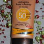Po otwarciu okazuje się, że krem poza pięknym opakowaniem ma też cudowny zapach, lekko słodki, ale nie męczący i nie „gryzący się” z używanymi perfumami. Mam skórę suchą, po aplikacji ten krem dobrze ją nawilżał, łatwo się wchłaniał i zostawiał na skórze miły delikatny film, lekko tłustą ochronną warstwę. Do tego nie koloryzuje skóry na biało, jak wiele innych kremów z SPF 50. U mnie sprawdzał się też nieźle pod makijażem. Latem zawsze bardzo łatwo robią mi się piegi, przy codziennym stosowaniu tego kremu nie zauważyłam, żeby pojawiły się nowe, a wydaje mi się, że testowałam go naprawdę w ekstremalnych warunkach (długotrwałe przebywanie na słońcu w dużym upale).