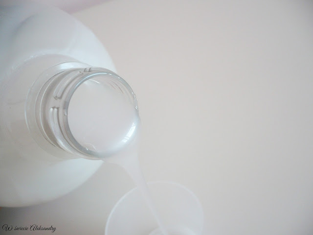 Szampon posiada biało – perłową barwę i jest dość rzadki, przelewający się przez palce co sprawia, że staje się mało wydajny.