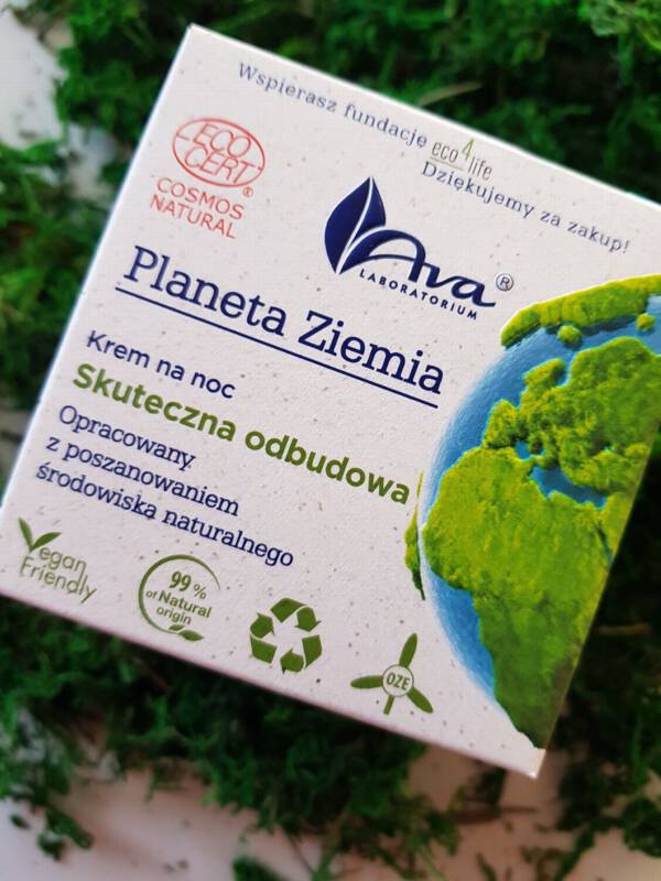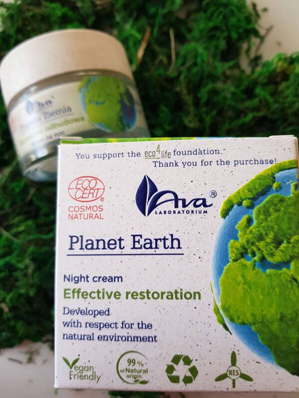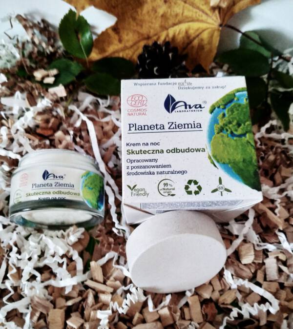 Krem na noc „Skuteczna odbudowa” wchodzi w skład linii Planeta Ziemia marki Laboratorium Kosmetyczne AVA. Wszystkie kosmetyki z tej serii w recepturze mają w pełni wegańskie i naturalne składniki, a w procesie ich produkcji wykorzystano najlepsze eco-rozwiązania.