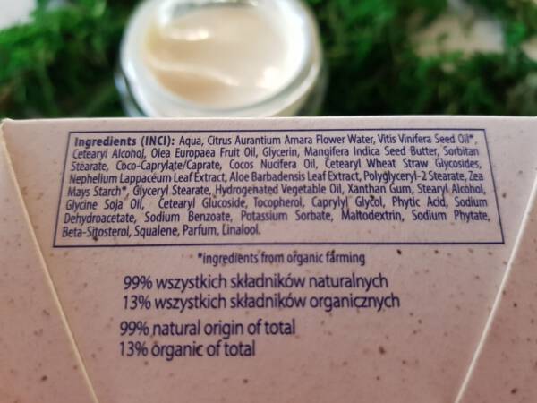 Krem ma bardzo przyjemny, delikatny zapach, który nie podrażnia, dodaje zaś przyjemnej otoczki do zabiegu pielęgnacyjnego. Wszystko to dzięki zawartemu w kremie hydrolatowi z neroli który oprócz pięknego zapachu koi oraz dodaje miękkości skórze. Pod tajemniczą nazwą “Neroli” kryje się ekstrakt z kwiatu gorzkiej pomarańczy, który pachnie obłędnie. Uwielbiam go. Warto tutaj dodać, że huydrolat z neroli to wodny roztwór naturalnych substancji zapachowych, który powstaje jako produkt uboczny destylacji olejków eterycznych z parą wodną. Jednak ze względu na większe rozcieńczenie hydrolaty są bezpieczne i łagodne dla skóry. Stanowią idealne rozwiązanie do perfumowania naturalnych preparatów kosmetycznych. Także jeżeli unikacie produktów perfumowanych ze względu na drażniący Was zapach, polecam wypróbowanie kremów Planeta Ziemia. Być może zmieni to Wasze podejście do perfumowanych kosmetyków.