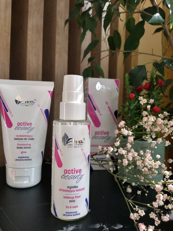 Mgiełka utrwalająca makijaż Active Beauty AVA Laboratorium to kosmetyk dla kobiet aktywnych uprawiających sport lub pracujących fizycznie, ponieważ specjalny składnik matujący reguluje wydzielanie sebum i zapobiega błyszczeniu się skóry.