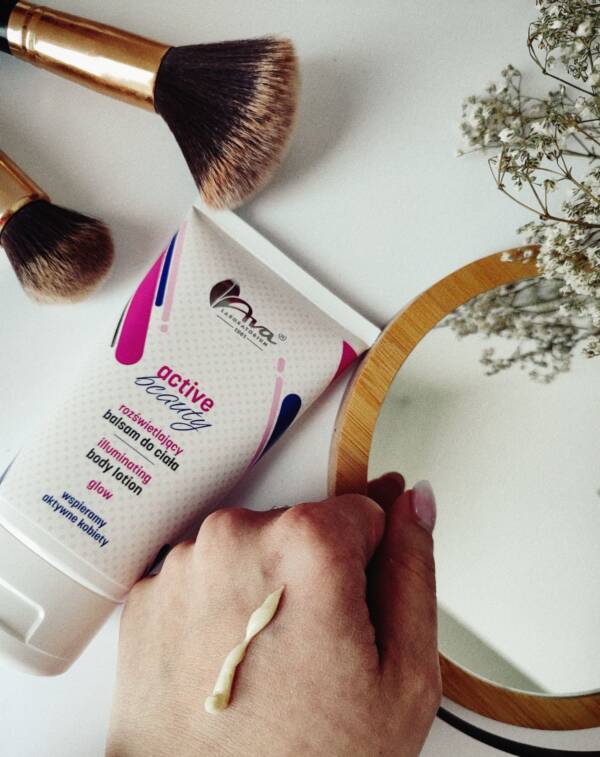 ROZŚWIETLAJĄCY BALSAM DO CIAŁA ACTIVE BEAUTY ze złotymi drobinkami rozświetla i pielęgnuje skórę, poprawiając atrakcyjność wyglądu. Doskonały po aktywnym dniu jak i na „wielkie wyjście”.