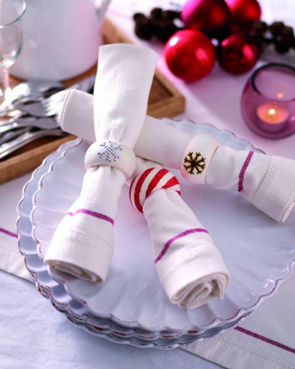 Własnoręcznie zdobione obrączki na serwetki to oryginalna dekoracja świąteczna na wigilijny stół. Mogą one być zdobione brokatowymi gwiazdkami lub biało-czerwonymi paskami. Używając odpowiednich narzędzi, możesz w kilku prostych krokach stworzyć coś, co przyciągnie uwagę gości.