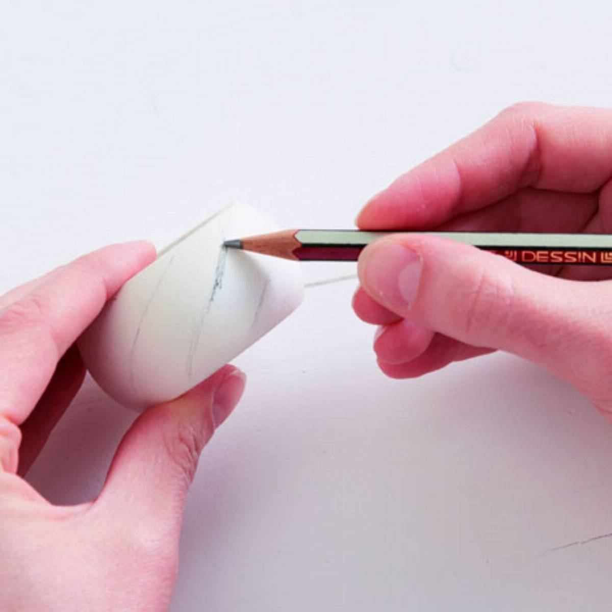 Ołówkiem narysuj na obrączce ukośne kreski, co 1-2 cm. Cienkim pędzelkiem nanieś tusz do embossingu na co drugą przestrzeń pomiędzy kreskami. To pierwszy krok do uzyskania biało-czerwony wzór na obrączkach.