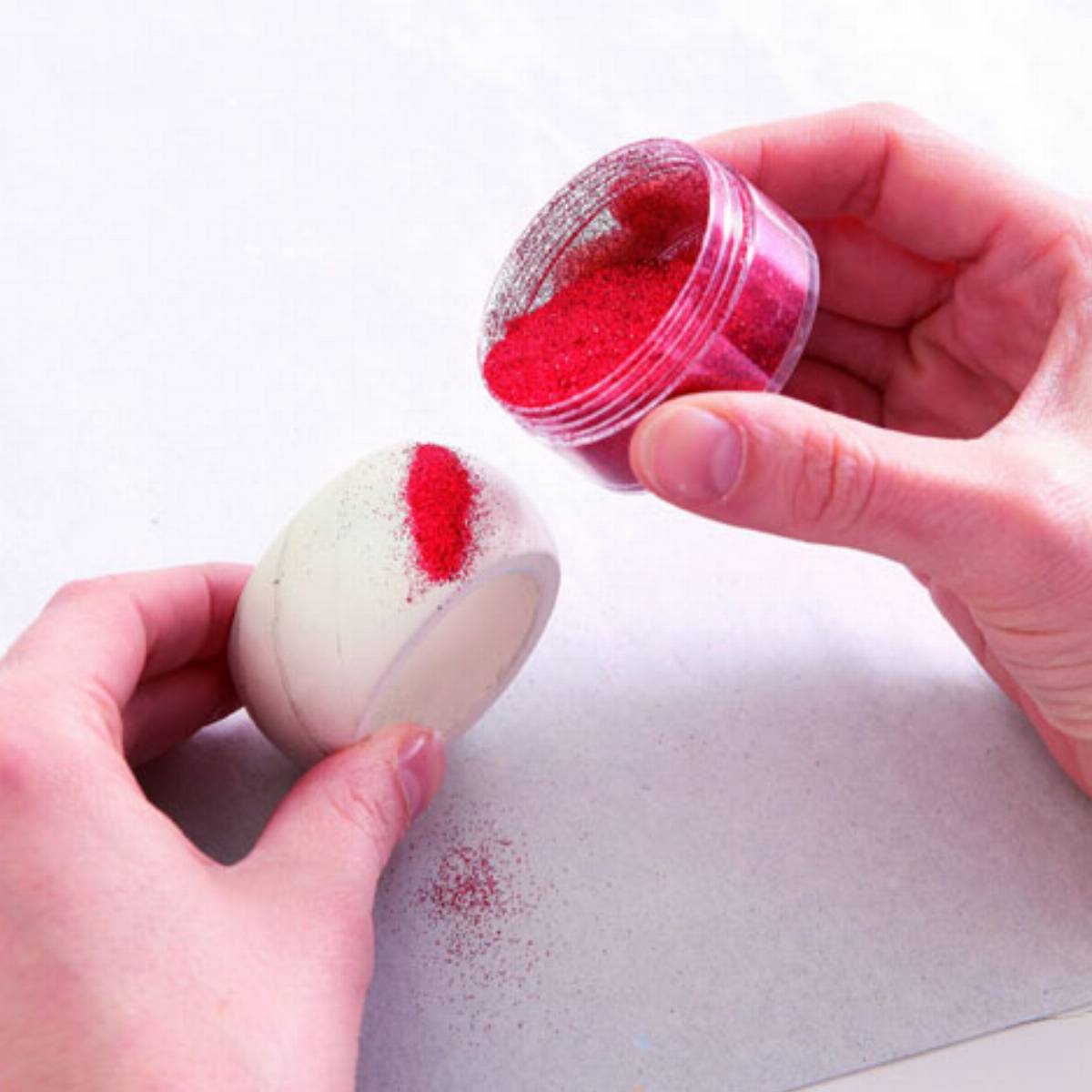 Pokryte klejem powierzchnie obsyp pudrem do embossingu. Nadmiar pudru możesz łatwo usunąć czystym pędzelkiem.