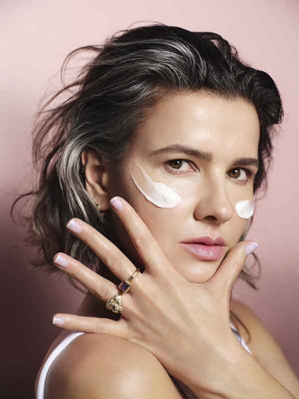 Karolina: Przyjazne dla skóry. Nie chcemy zmieniać kobietom typu cery. Nie ingerujemy w to, czym obdarzyła nas natura i co świetnie działa. Skóra ma swój „rozum” − możemy ją chronić i wzmacniać, bo stres i zanieczyszczone środowisko osłabiają jej odporność. Naszym celem jest więc wspierać jej równowagę, a także koić, by była zdrowa i mogła się w spokoju regenerować.