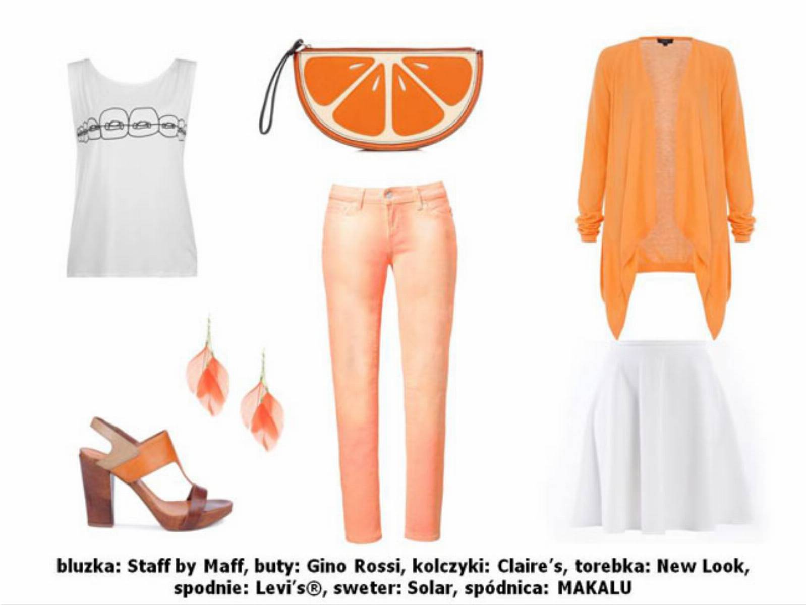Energetyzujący pomarańcz nigdy nie wychodzi z mody! Połączenie go z bielą i ciepłymi brązami tworzy prawdziwie wakacyjną kompozycję barw. Ten zestaw kolorystyczny sprawdzi się zarówno na plaży, jak i podczas lata w mieście.