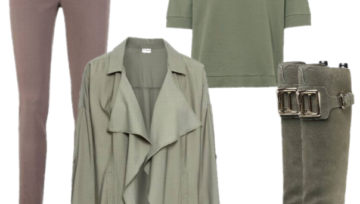 Pierwsza stylizacja wpisuje się w kolorowe lata 70. i aż kipi energetyczną zielenią. Spodnie w finezyjny wzór ciekawie łączą się z koszulą w groszki i urokliwymi sandałkami. Oczywiście nietrudno tutaj nie zauważyć kocich okularów okraszonych panterką, na które moda zaczęła rozkwitać już w latach 50.
