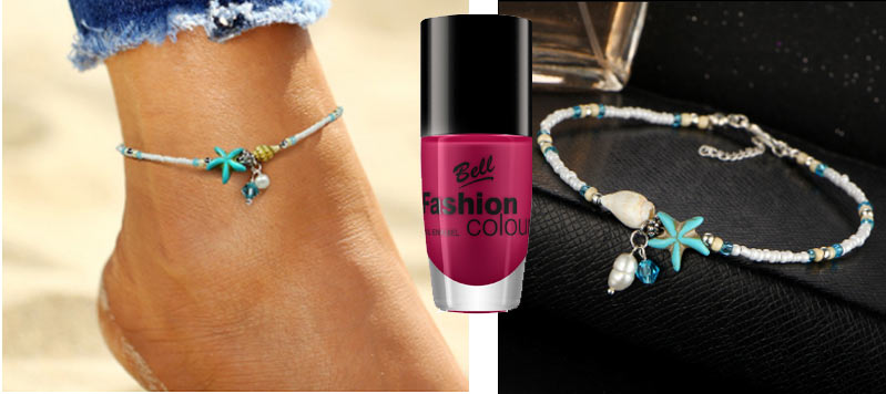 Podobny efekt przyniesie połączenie intensywnie różowego, mocno nasyconego kolorem lakieru z serii Fashion Colour, Bell z koralikową bransoletką. Możesz zdecydować się na wygodny model, ozdabiający samą kostkę.