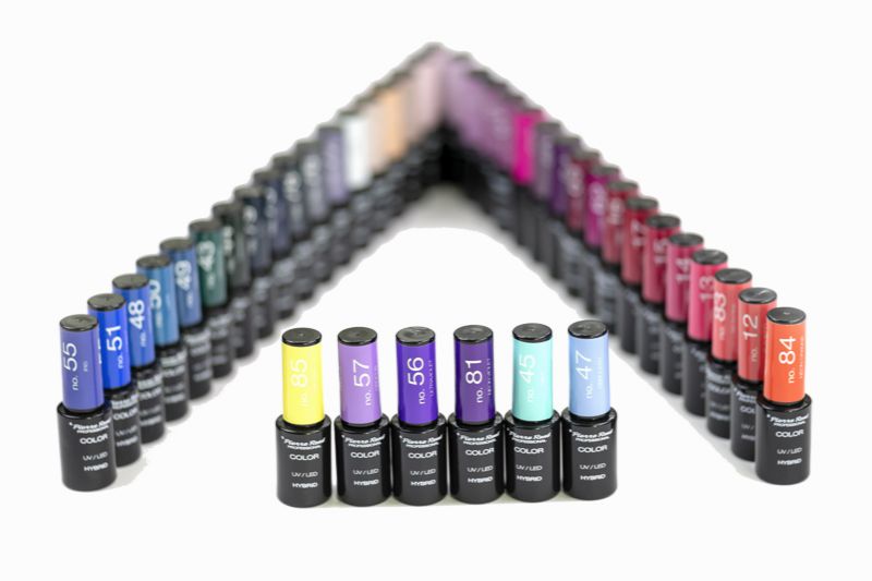 Nowa koncepcja systemu hybrydowego oferuje najwyższą jakość nowoczesnych formuł i atrakcyjny, nowy design aż 85 kolorów lakierów i preparatów hybrydowych zamkniętych w buteleczkach o pojemności 6 ml.