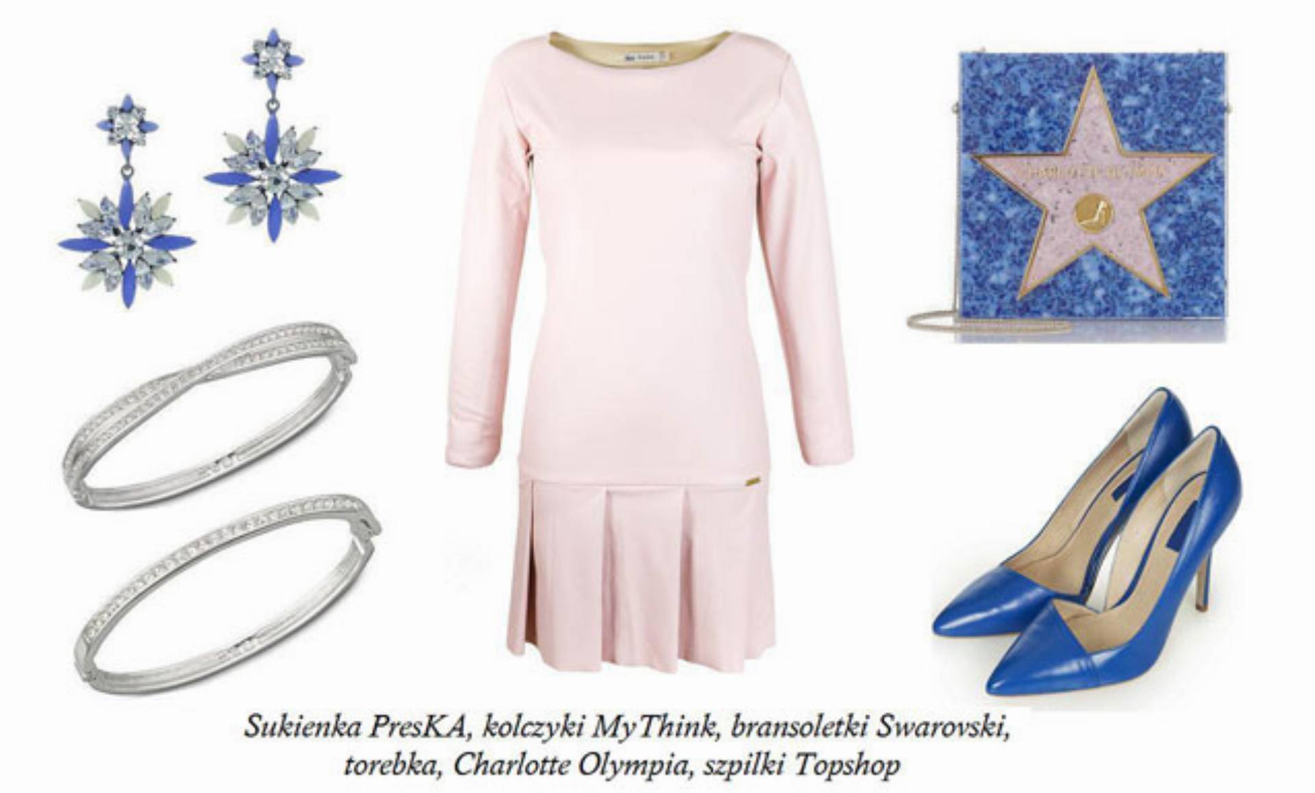 Jako ostatni zestaw proponujemy minimalistyczną sukienkę z obniżonym stanem w kolorze pudrowego różu. Wykonana z matowej eko skóry znakomicie wpasowuje się w modowe tendencje. Marka PresKA stawia na ponadczasową klasykę i uniwersalność, dlatego sukienka ta sprawdzi się również podczas Świąt. Uzupełniona o przykuwające uwagę dodatki nabiera zupełnie innego wymiaru. Efektowne kolczyki i delikatne bransoletki będą cudownie połyskiwać w świetle świec i światełek choinkowych. Ciekawa torebka na łańcuszku pomieści wszystkie kobiece skarby. Dopełnieniem będą kobaltowe czółenka i jesteś gotowa na Święta!