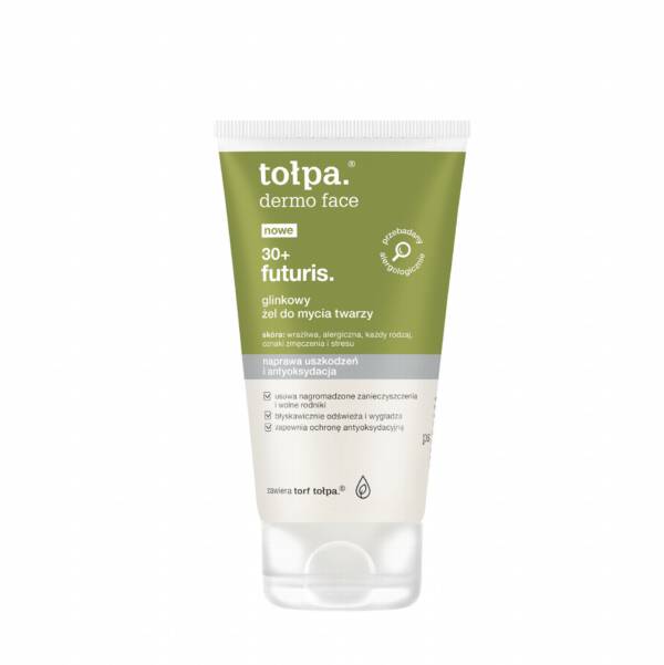 - futuris 30+ glinkowy żel do mycia twarzy, zawierający: antyoksydacyjny olej kurkumowy, przeciwstarzeniowy peptyd o nośnikach z masła shea oraz czerwoną i białą glinkę.