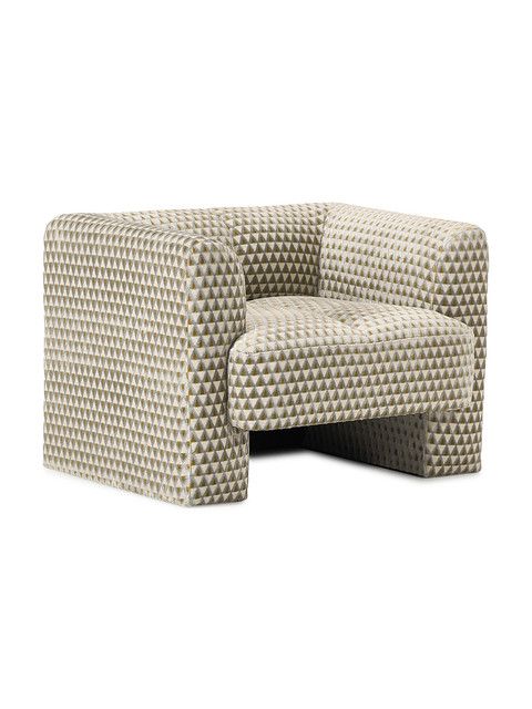 4. Fotele narożne: Fotele o kubistycznym kształcie, pokryte geometryczną tapicerką w odcieniach beżu i złota. Wyróżniają się nowoczesnym designem i komfortem.