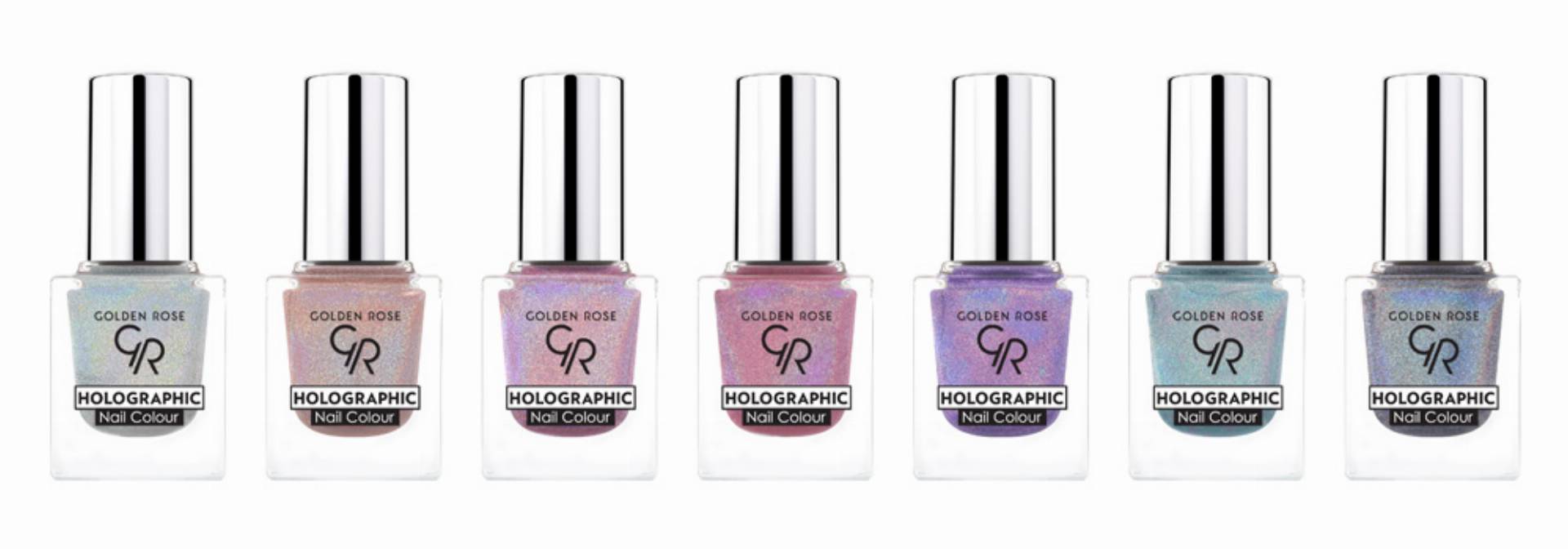Na pierwszy rzut idą lakiery, które ledwo wyszły na rynek, a już robią spore zamieszanie 🙂 Mowa o lakierach holograficznych – Holographic Nail Colour od Golden Rose (19,90 zł). Te cudeńka mienią się w słońcu istną tęczą – będą hitem na plaży i doskonałym uzupełnieniem miejskich stylizacji.