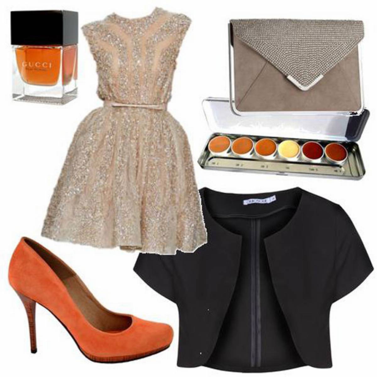 Jeśli możesz tak wystąpić na studniówce – to zabłyśniesz jak prawdziwa gwiazda. Styl glamour doskonale zostanie przełamany butami w kolorze pomarańczowym (Nessi) a także dobranym kolorem na powiekach i paznokciach. Czarne bolerko stanowi bezpieczne i eleganckie połączenie.