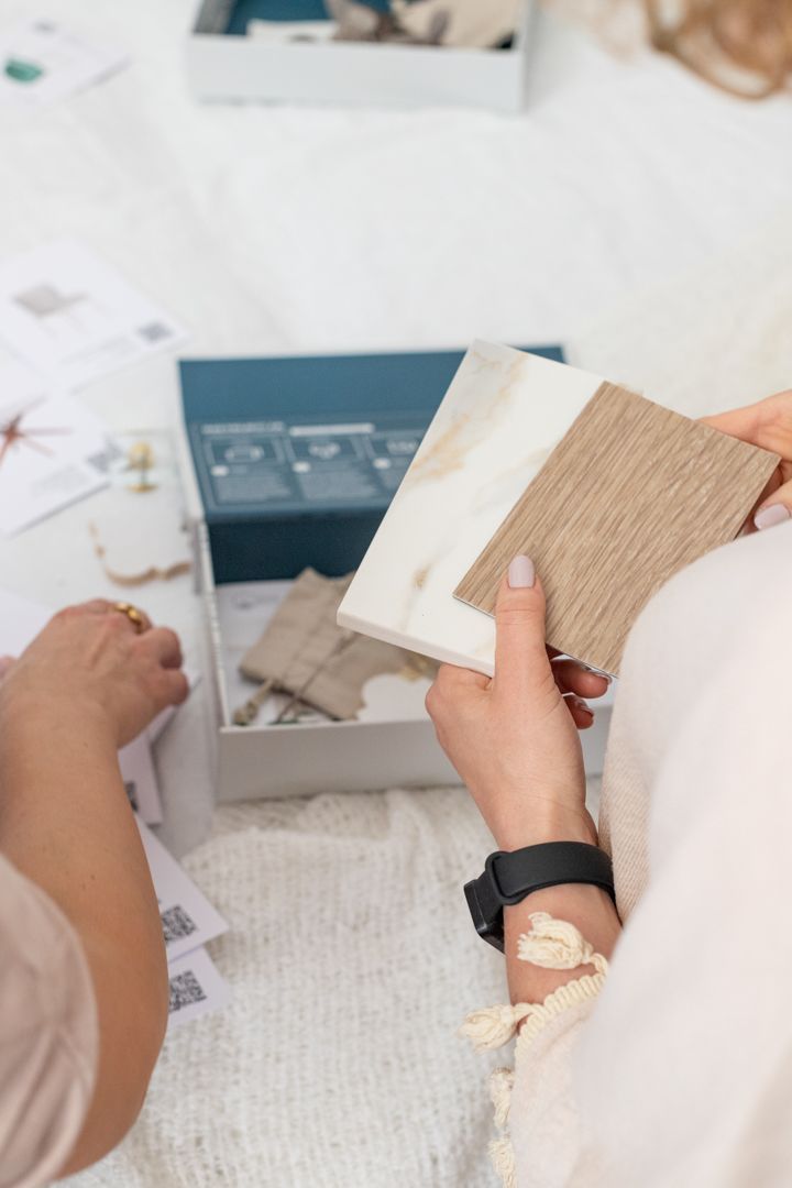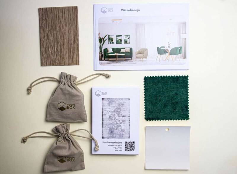 Po opracowaniu projektu otrzymujesz pudełko Room-Box, który zawiera karty produktów, próbki materiałów oraz wszelkie niezbędne informacje do realizacji projektu. Samodzielnie wybieramy elementy wyposażenia, które najbardziej nam się podobają i z nich tworzymy swoje nowe wnętrze. Kolejnym krokiem jest już realizacja.