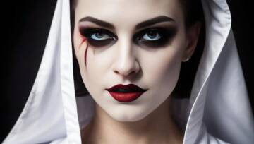Tego rodzaju makijaż jest jednym z prostszych do wykonania. Blade lico wampira można uzyskać wykorzystując biały matowy puder. Następnie podkreślamy oczy wybranym cieniem. Najlepiej, aby był on dość ciemny, by nadać spojrzeniu mroczny look, choć w tym przypadku świetnie sprawdzą się także tony czerwone. Nie musimy tu uważać z ilością. Kolor powinien być nałożony dość grubo i wystawać także poza kąciki oczu. Dzieło zwieńczy makijaż ust. Ten wykonamy przy użyciu ciemnoczerwonej szminki, którą narysujemy także opadającą z kącików warg krew. Taką nieregularną linię najlepiej wykonać przy użyciu pędzelka do ust. Rysunek będzie bardziej precyzyjny i jednocześnie bardziej wiarygodny.