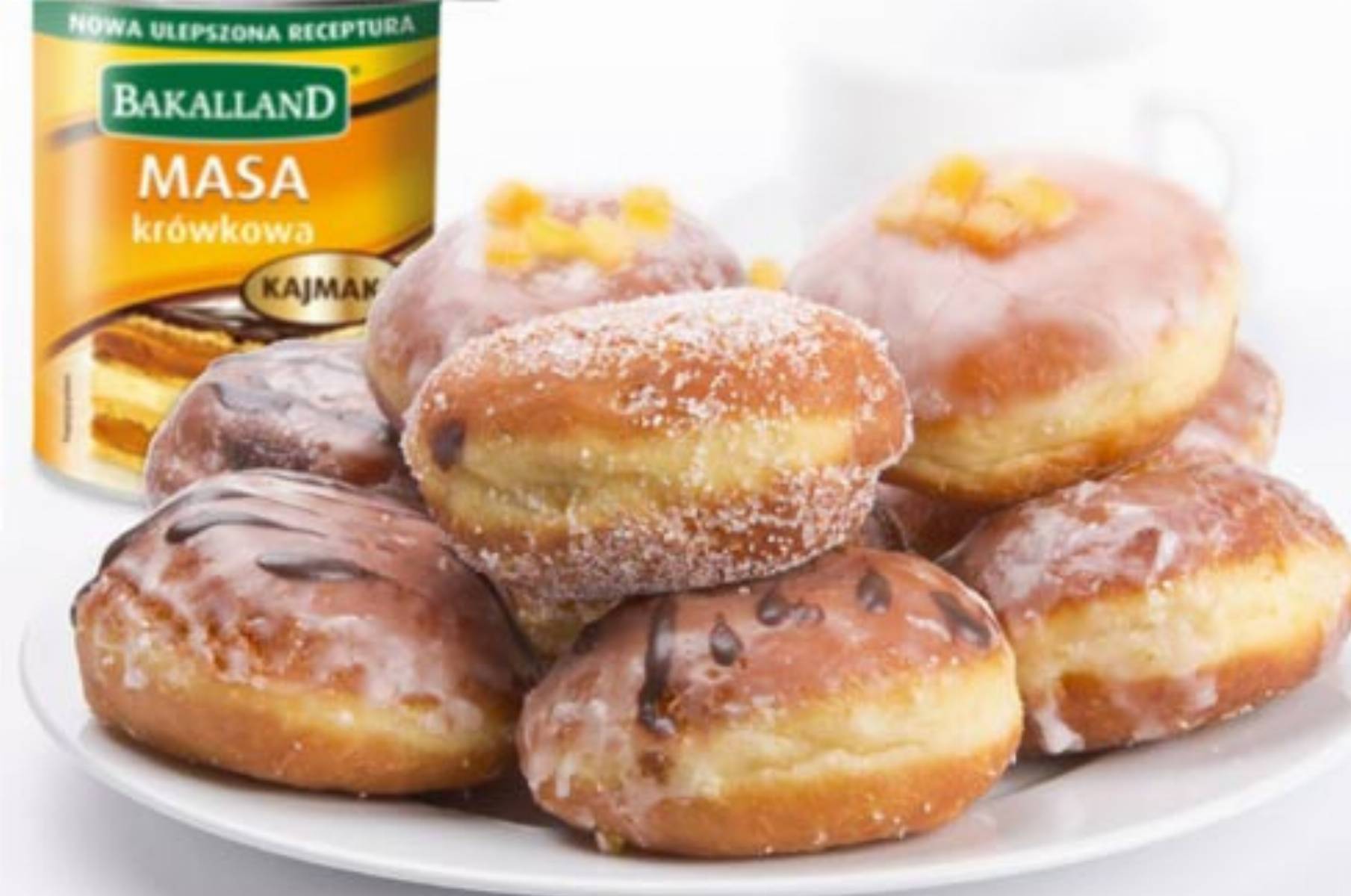 Wyrośnięte pączki wkładać na odpowiednio nagrzany olej (smażymy partiami, po około 5 pączków przy jednym podejściu) i smażyć przez około 2 minuty z każdej strony. Pączki nie mogą za szybko się rumienić, ponieważ w środku będą jeszcze surowe. Podczas smażenia regulować temperaturę oleju, aby drastycznie nie zwiększała się i nie obniżała. Paczki wyławiać łyżką cedzakową i odkładać na papierowe ręczniki. Smażyć następne pączki jak poprzednio. Pączki ostudzić i nadziewać masą kajmakową (najlepiej Bakalland) wciskając głęboko końcówkę szprycy i wyciskając pożądaną ilość nadzienia. Posypać cukrem pudrem lub polać lukrem ze skórką pomarańczową.