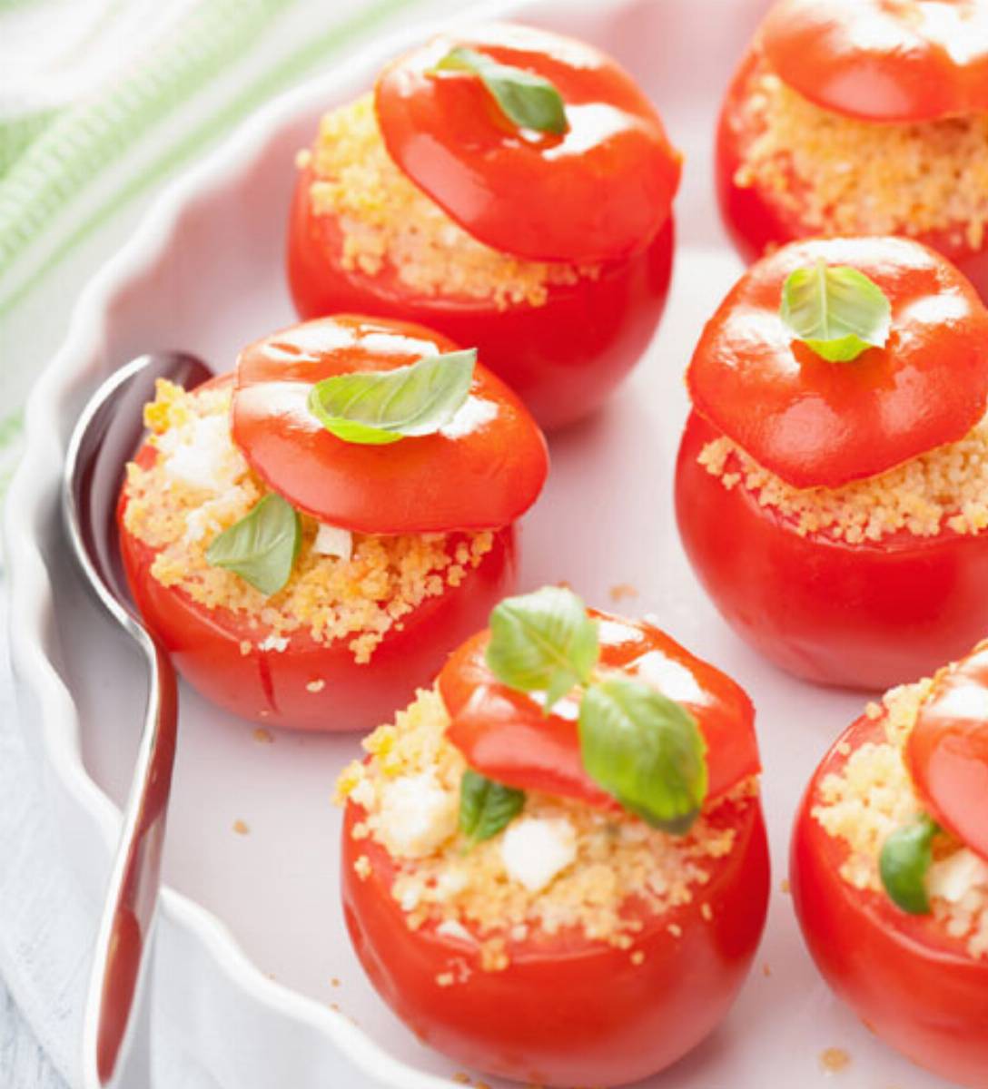 Pomidory nadziewane kuskusem i sosem serowym