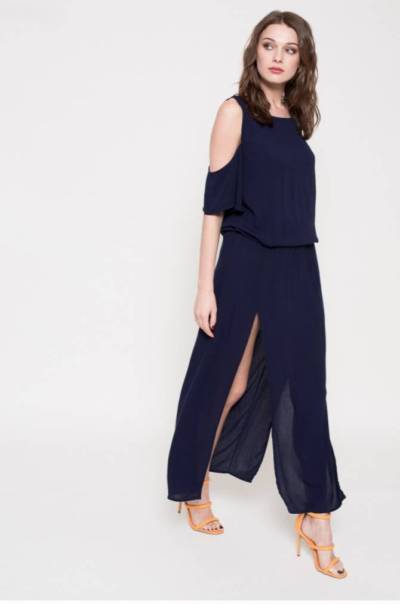 Ciemnogranatowa zwiewna sukienka cold shoulders – Answear, 129,90 zł