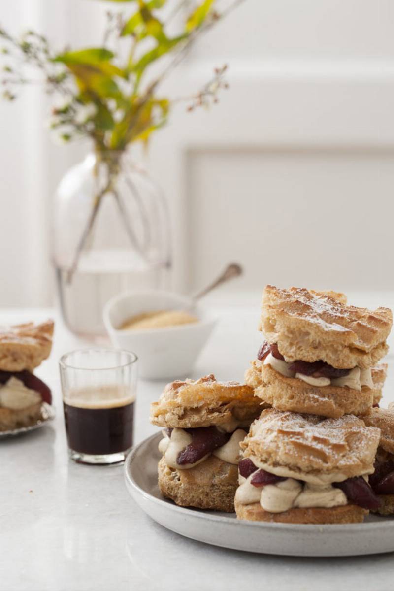 Składniki na deser: Ptysie kawowe nadziewane gruszkami