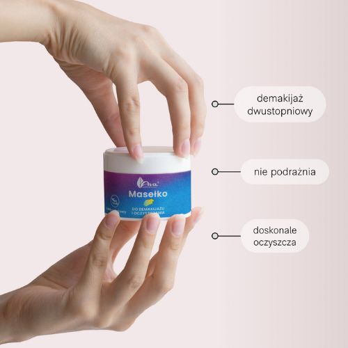 Masełko do demakijażu i oczyszczania AVA to niesamowicie wydajna formuła oparta na naturalnych olejach. Zapewnia ona dokładne oczyszczanie, nawet w przypadku makijażu wodoodpornego, kosmetyków z filtrami SPF oraz nadmiaru sebum. Co więcej, działa kojąco na skórę i sprawdzi się na każdym rodzaju cery, również wrażliwej i problematycznej. Przede wszystkim jednak, pozostawia skórę doskonale oczyszczoną i nawilżoną, gotową do dalszej pielęgnacji.