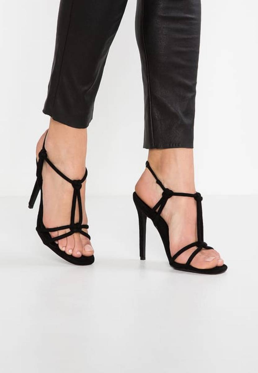 Czarne sandały na słupku wiązane wokół kostki – Missguided, 209 zł