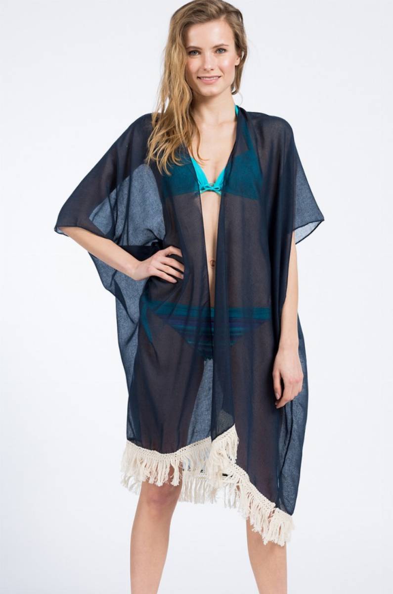 Lekka, granatowa narzutka z białymi frędzlami – Vero moda, 69,90 zł
