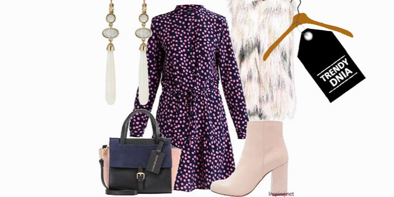 Kobiecy zestaw składa się z romantycznej sukienki mbyM STEAM, kamizelki Frieda & Freddies, a także dodatków w podobnej kolorystyce: botków KIOMI, torebki Cosmoparis i Dyrberg/Kern LINDSEY. Stylizacja do ciekawy look na wieczorne wyjście, randkę lub spotkanie ze znajomymi.