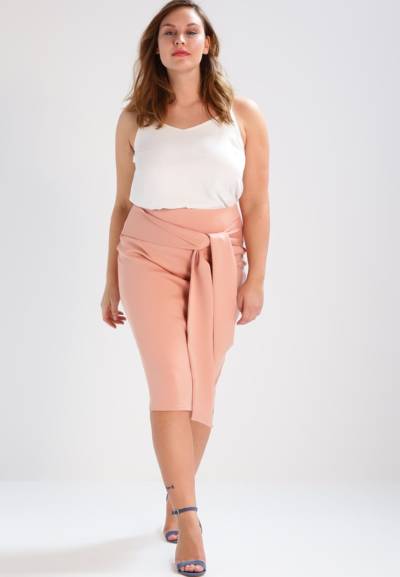Pudrowo-różowa spódnica z wyszczuplającym wiązaniem – Missguided plus, 83,30 zł
